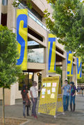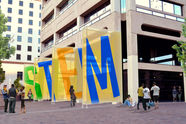 Other elements developed by Baker A+D for the STEMulus Center include custom window graphics, prefabricated plywood sandwich boards for advertising and announcements, and twelve-foot high exterior entry banners.